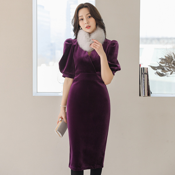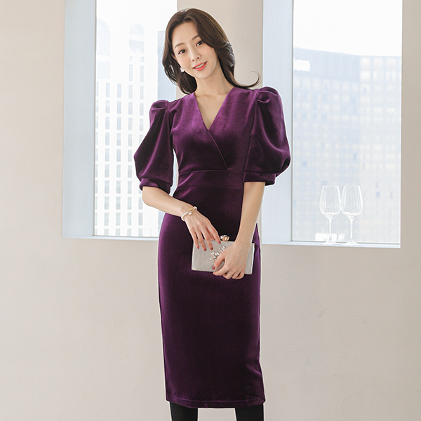 ベルベット グラム パフ 袖 ワンピース
