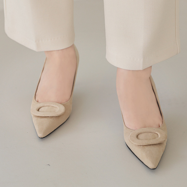 スエード オーバル バックル スティレットヒール