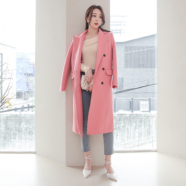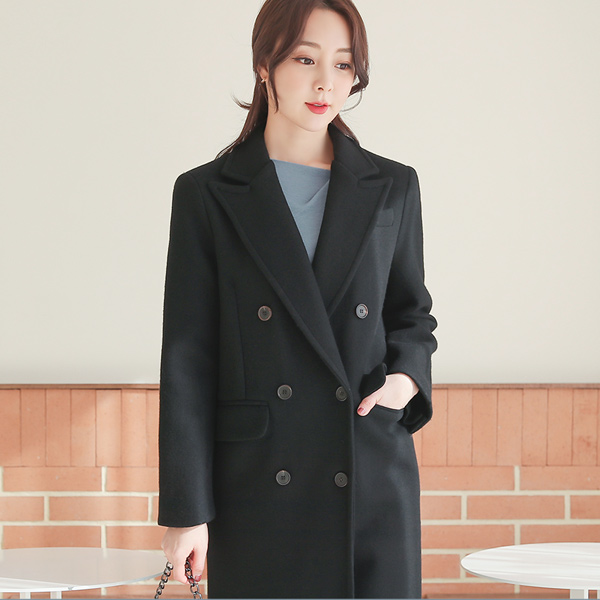 ダブルボタン ピークトカラー バクシー ウール ロングコート