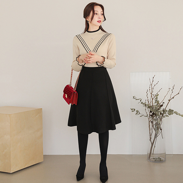 ダブルボタン ベルティード フレア トレンチ ウールのコート