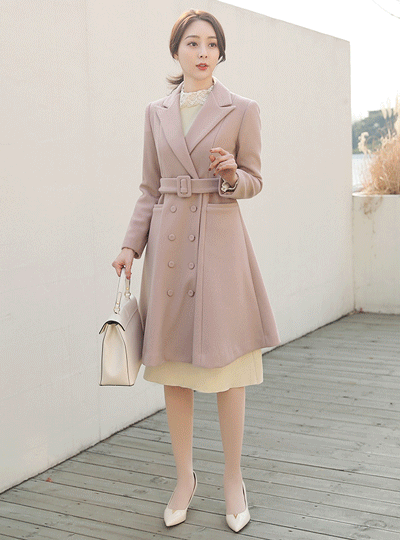 ダブルボタン ベルティード フレア トレンチ ウールのコート
