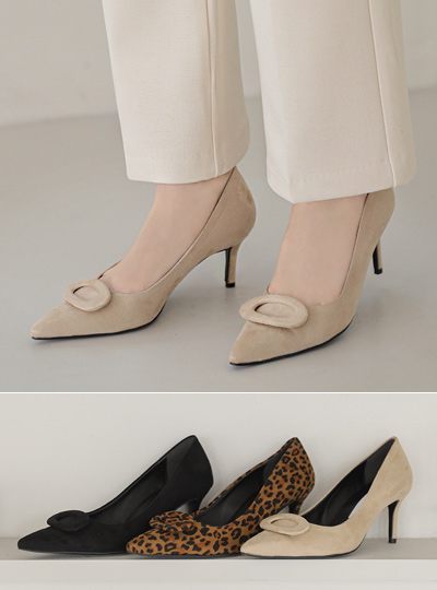 スエード オーバル バックル スティレットヒール