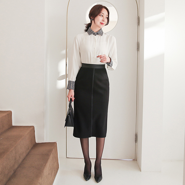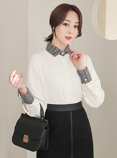 モダン ヘリンボーン 配色 シャツ カラー ブラウス