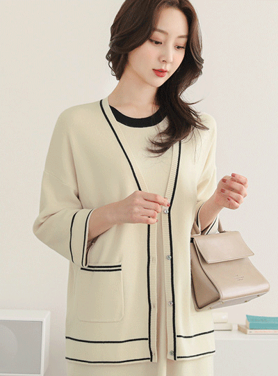 ビスコース 配色ライン ニット カーディガン