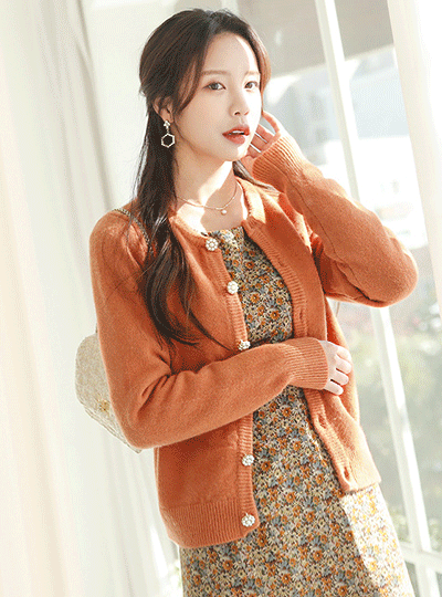 Juicy 花柄 真珠ボタン ラウンド カーディガン