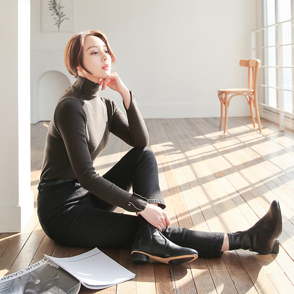 袖 三角 スリムコール天 とっくりえり ニットティーシャツ