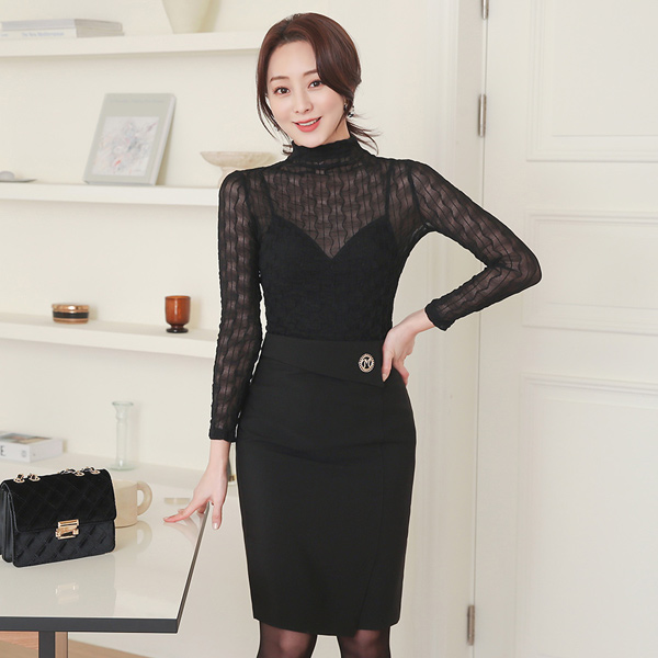 엘레나 ゴールドボタン アンバランス スカーフ ブラウス