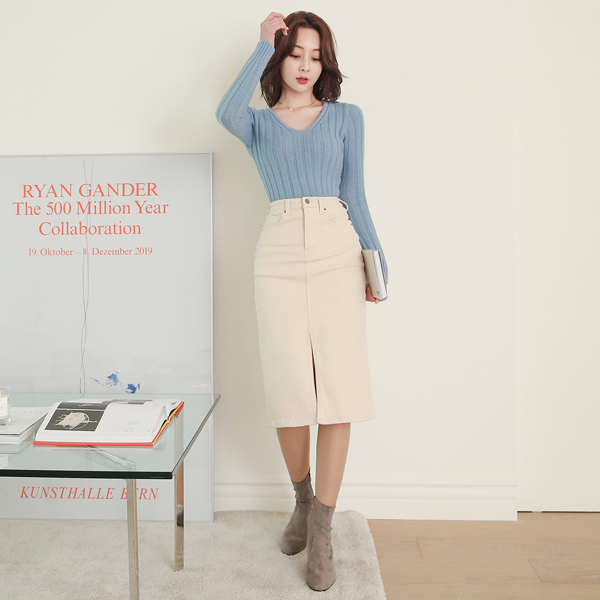 デーリー ボールド コール天 Vネック ニットティーシャツ