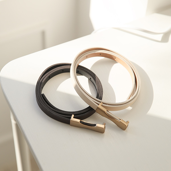 無光 ゴールドバー装飾 スリム ベルト