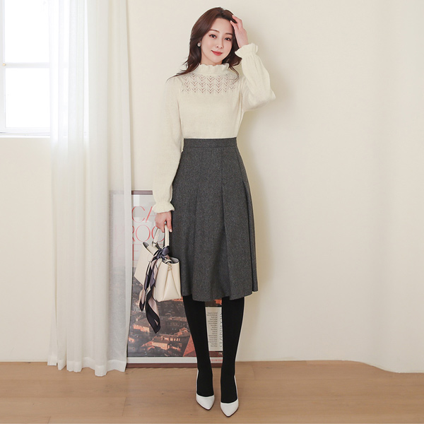 すかし パンチング プリルネック ブークレ ウール ニット