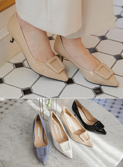 スクエア 有光 スティレット ヒール