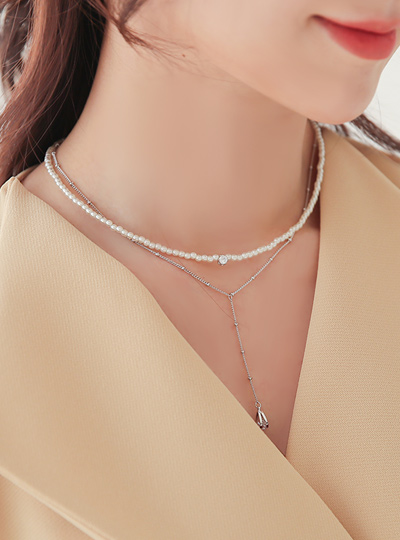 ブリンク キュービック ドロップ Yチェーン&真珠 ネックレス SET
