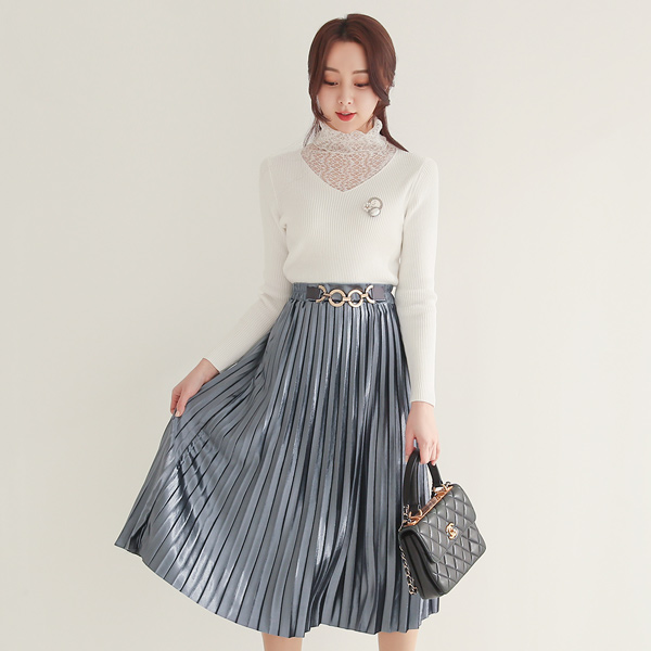 ゴールドわ 飾り ベルベット プリーツ スカート