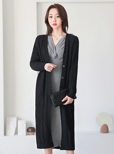 ビスコース ケーブル ベルティード ブイネック ロングカーディガン