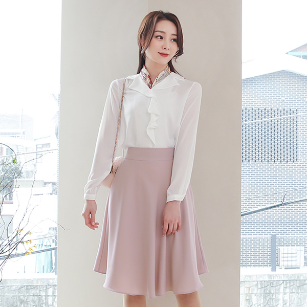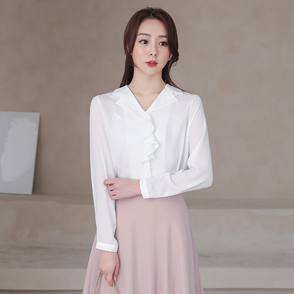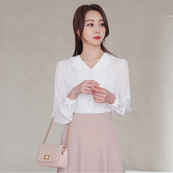 アンバランス フリル オープンカラー ブラウス