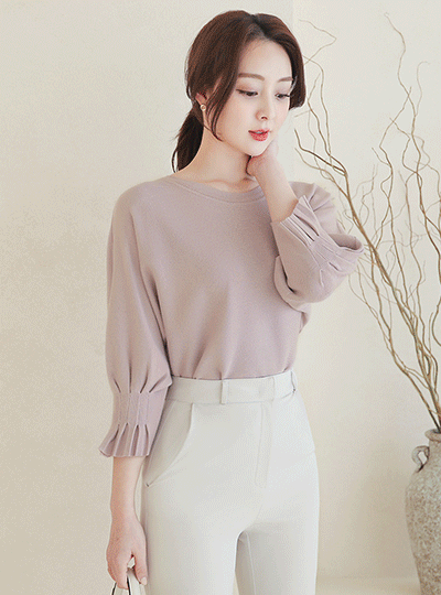 ピンタック パフライン ビスコース ドルマンスリーブ ニットティーシャツ