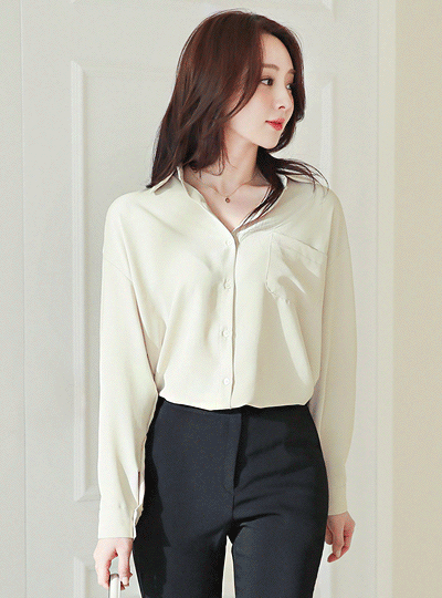 基本 カラー ワンポケット ベーシック シャツ ブラウス