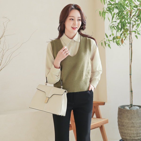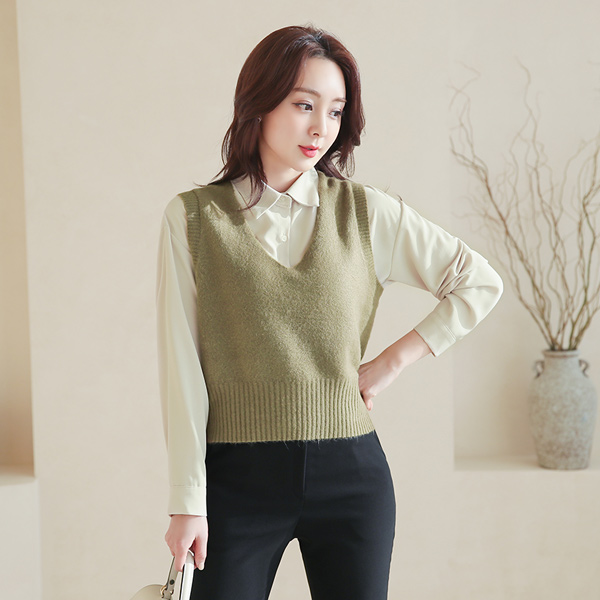 ソフト 앙고라터칭 Vネック ニット ベスト