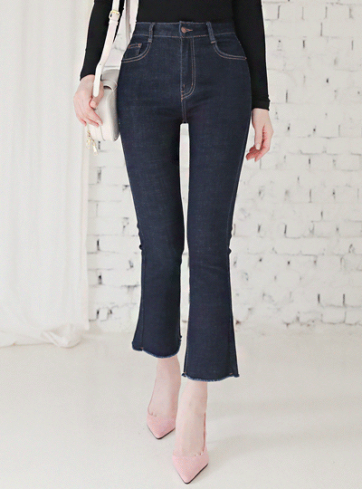 ハイライズ 生地 弾力 ブーツカット デニム ズボン