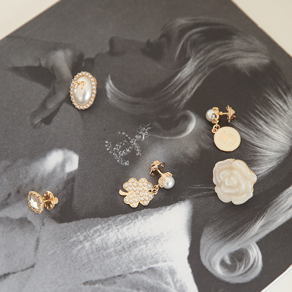 クラシック 花柄 真珠 クリップ ブローチ(5set)