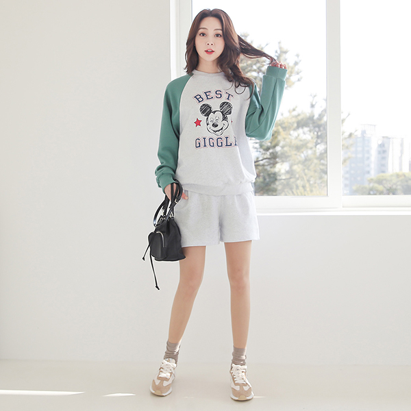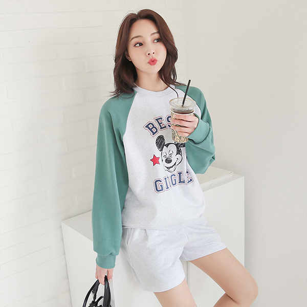 ミッキー ドローイング 配色 ラグラン マンツーマン