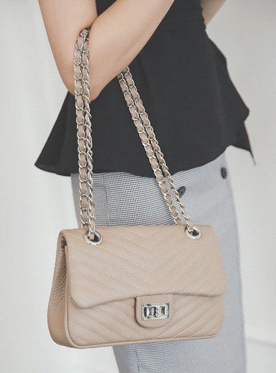 カーフスキン Vキルティング Silver チェーンかばん