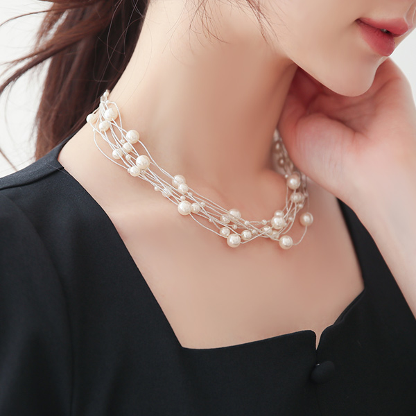 きらっと レイヤード バンドル パールホワイト ネックレス