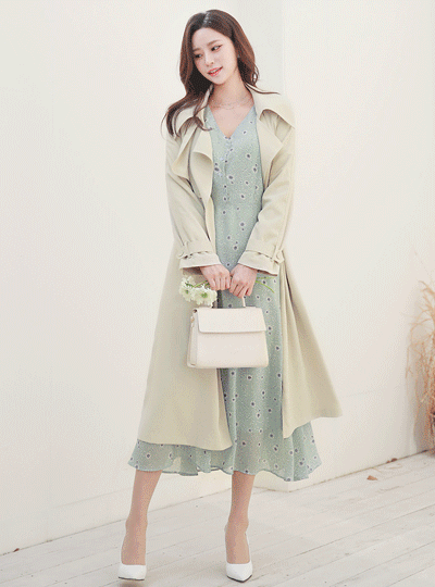 ワイドカラー Gun Flap ダブルボタン シルキー トレンチコート