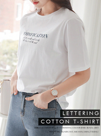 モード レタリング コットン ラウンド ティーシャツ
