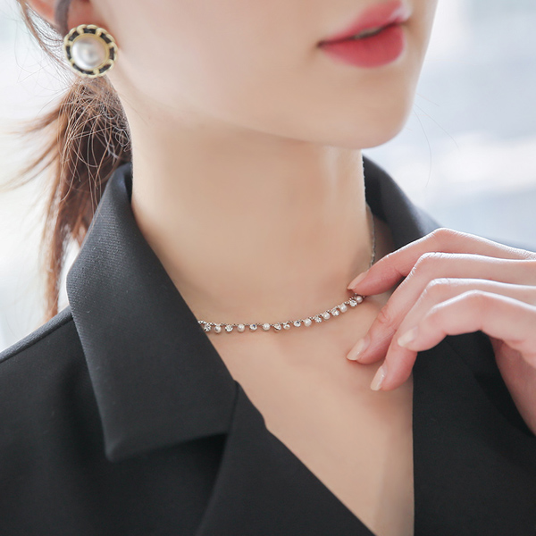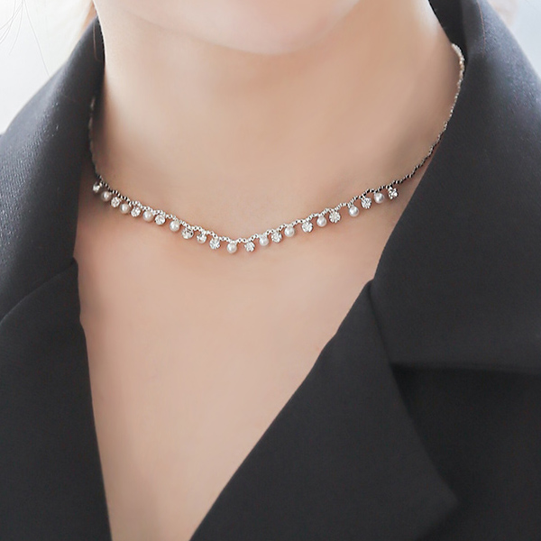 Silver スワン 真珠ボール レイヤード ネックレス