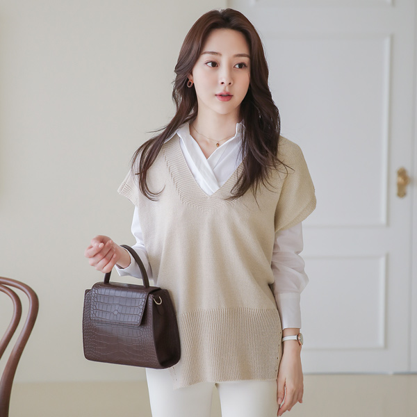 半オープン カラー アンバランス ボタン 弾力 シャツ