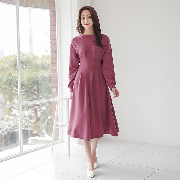 ビビッド コットン ラグラン ダーツ ピンタック フレア ワンピース