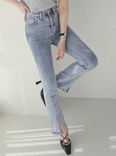 ユニーク ストーン ウォッシング スリット ブーツカット デニム