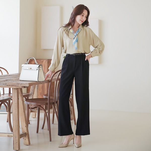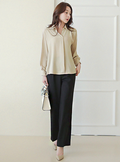 半オープン シングル 襟シャツ ブラウス