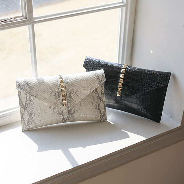 Gold スタッド じゃび斑紋 フラップ クラッチ