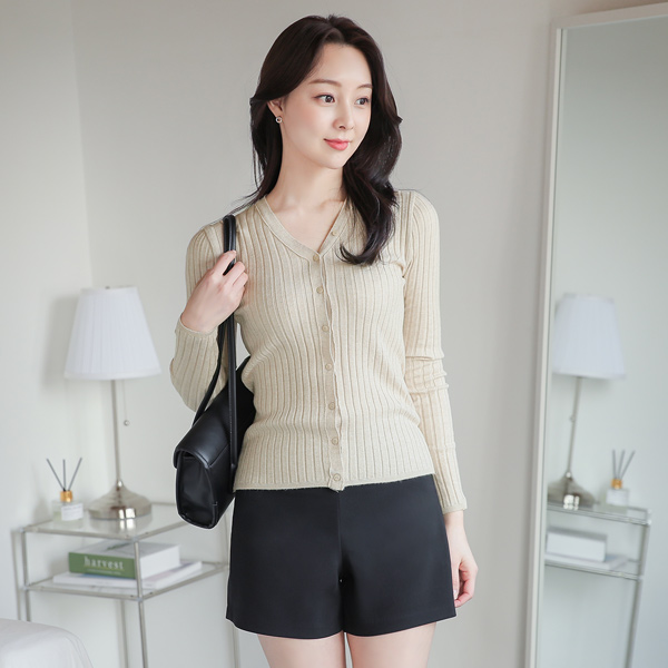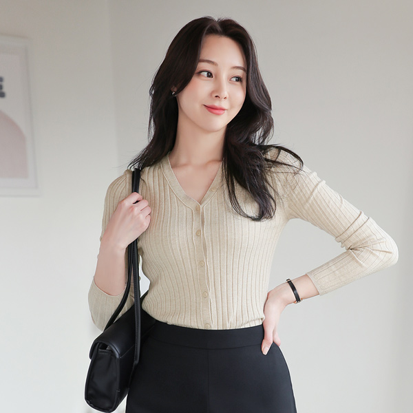 ソフト コール天 ボタン トリミング ブイネック ニット
