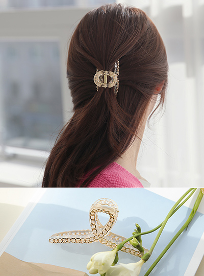 ゴールドチェーン ラウンド 縒り ヘアバレッタ