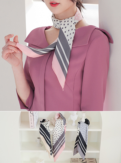配色 スクエア ドット柄 春季 スカーフ