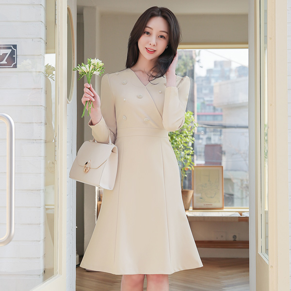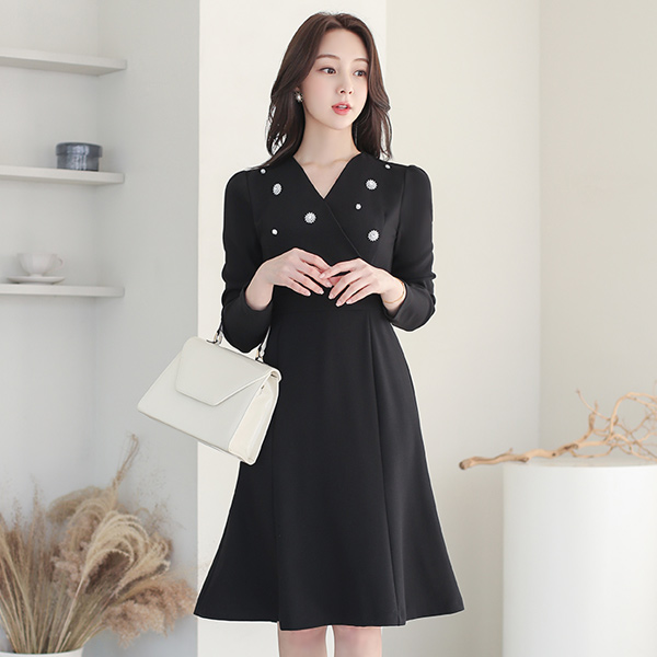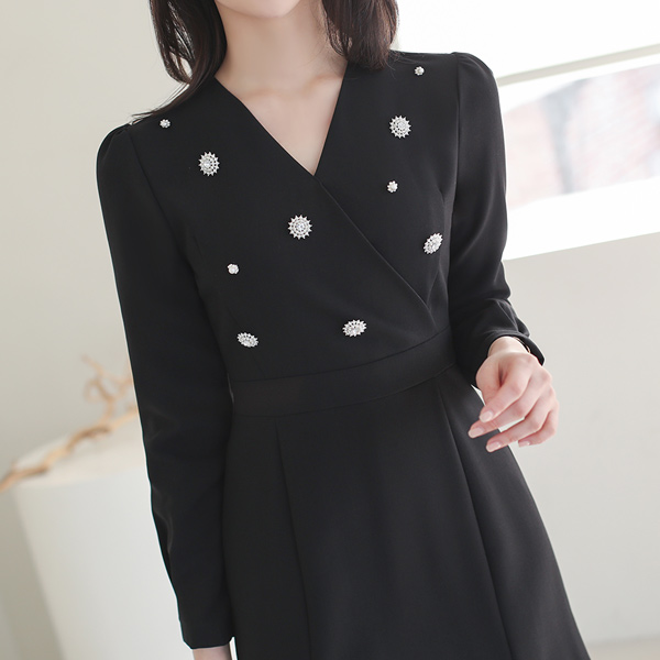 真珠 花柄 ゴアード Aライン ワンピース Ⅱ