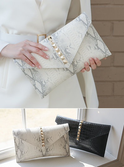 Gold スタッド じゃび斑紋 フラップ クラッチ
