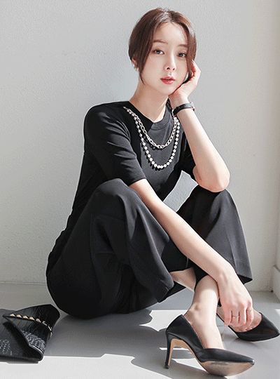 ボールド 真珠&チェーン ネックレス ティーシャツ