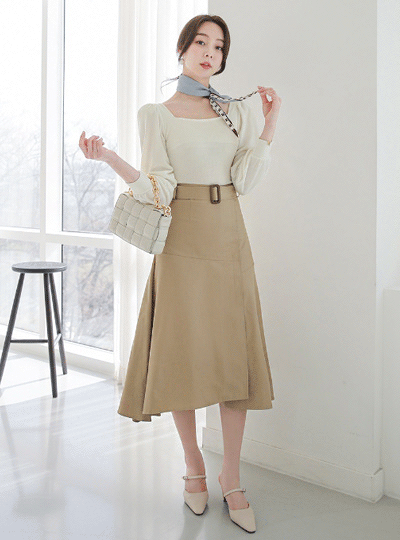 アンバランス 切開 ベルティード フレア コーティング スカート