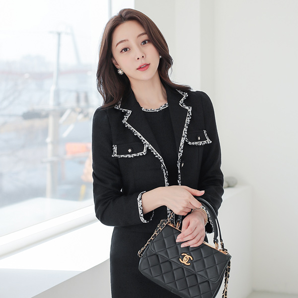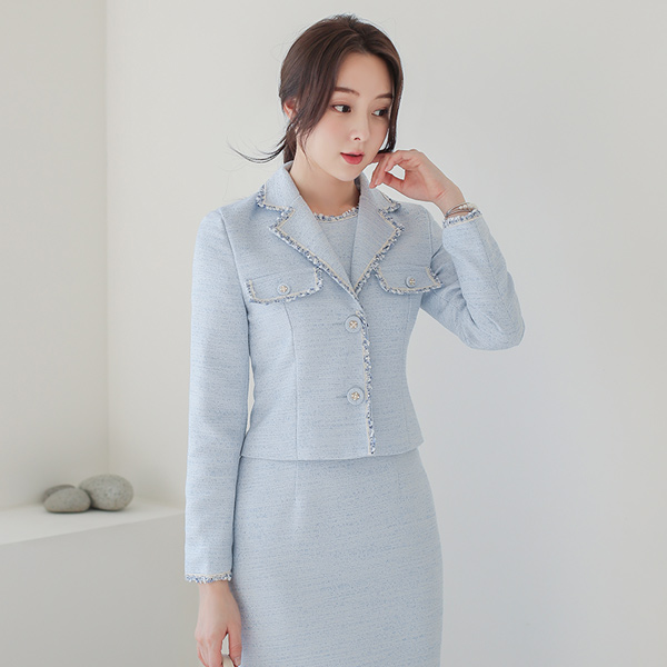 フリンジ ブレード ポケット ツイード ショートジャケット