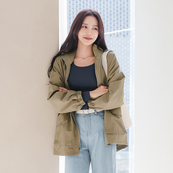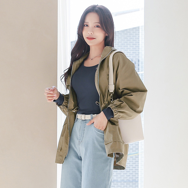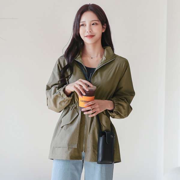 ライト コーティング ハイネック ストリング ウインド ジャンパ