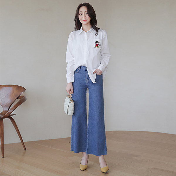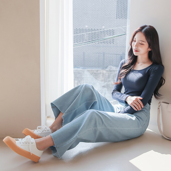 クーリング ライト 後面バンド ワイド デニム ズボン