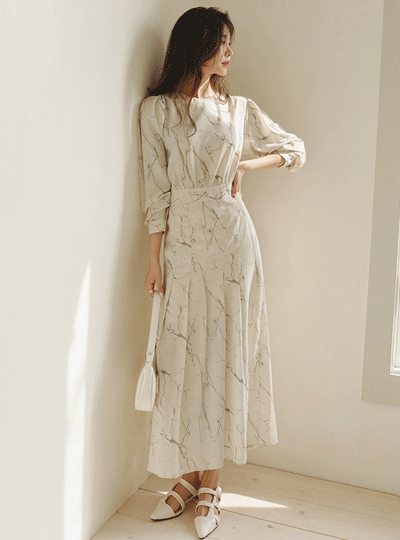 Eli 捺染 プリーツ ロング ワンピース