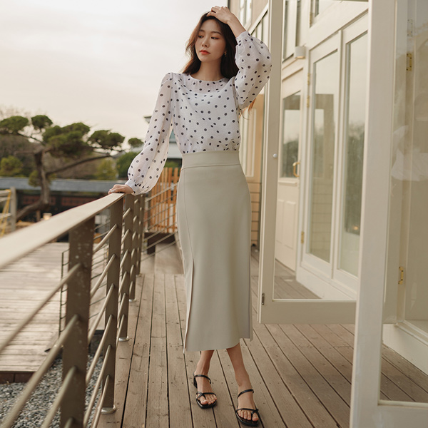 細かく美しい 弾力 切開 モダン ロング スカート