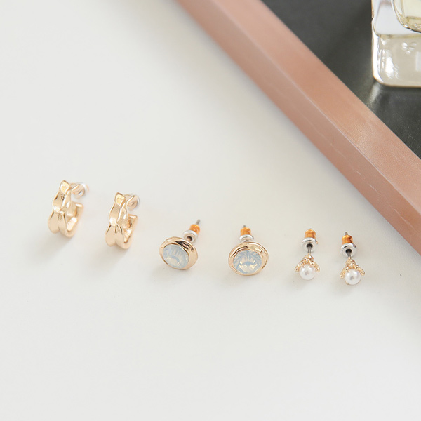 ミニ キュービック&リング イヤリング(3SET)