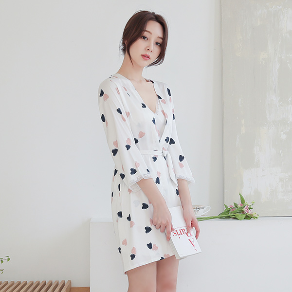 ハート 繻子 スリップ ガウン SET