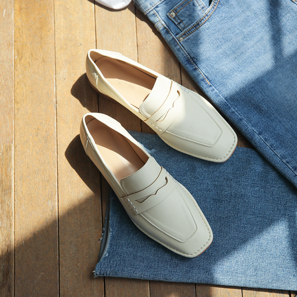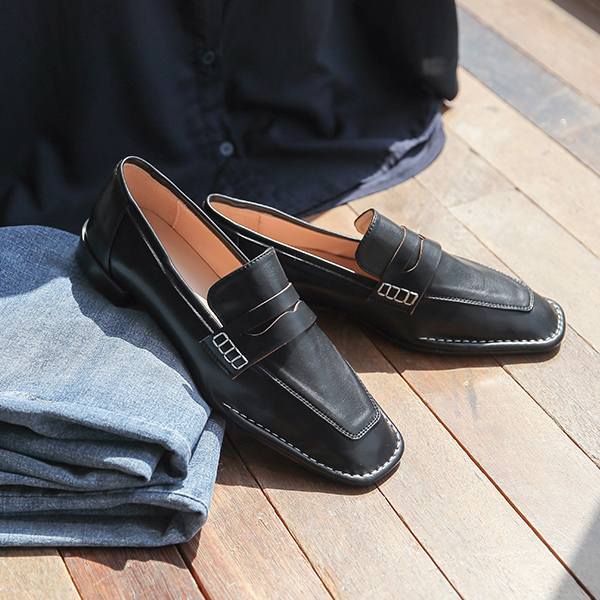 Penny ステッチ フラット スクエア ローファー